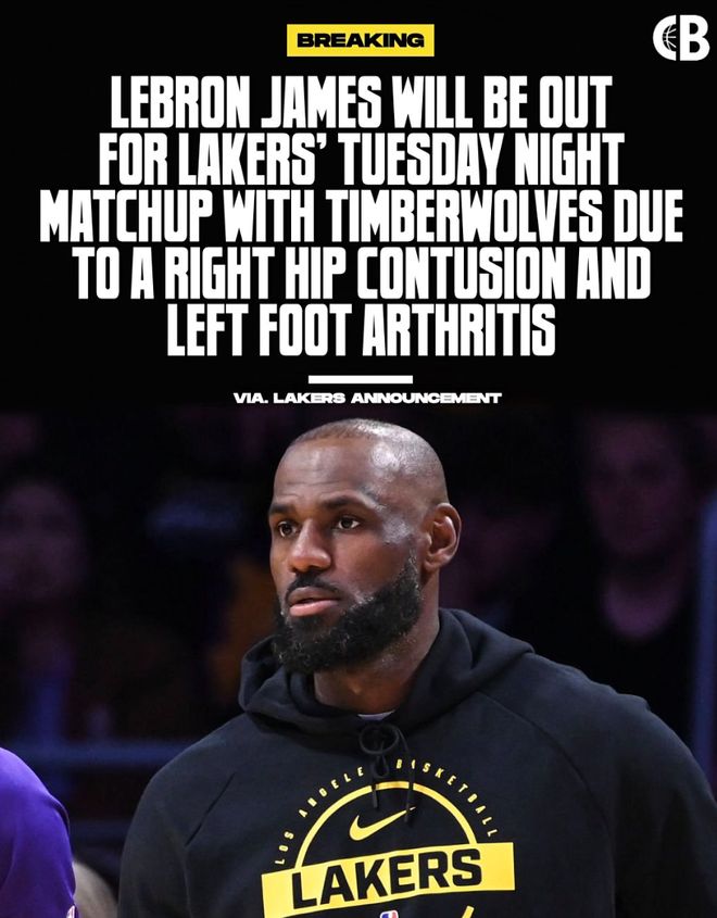 北京時間3月11日,勒布朗-詹姆斯繼續缺席,他已經連續3場比賽缺席,傷病報告顯示他因右髖挫傷&左腳關節炎無法登場,雷迪克也表示詹姆斯的右髖挫傷是在對陣掘金的比賽中摔傷的,自賽季初連續缺席14場后詹姆斯再度連續缺席三場。最終湖人大勝西部第三的森林狼。