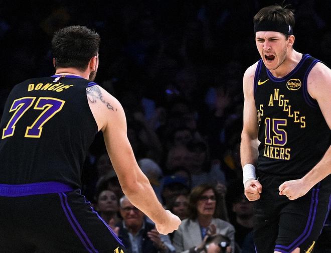 反觀湖人,即便沒有老詹,盧卡和里夫斯雙核還是得分組織一把抓,把進攻支棱得井井有條。里夫斯出戰38分鐘,20投10中(三分球10中4),罰球9中7,砍下31分+7籃板+8助攻,場上正負值為+18;盧卡出戰34分鐘,24投11中(三分球12中4),罰球6中5,轟下31分+11籃板+11助攻+2搶斷+1蓋帽,場上正負值高達+20,冠絕全場。與此同時,盧卡一戰刷爆多項NBA紀錄,并打破了一項由科比保持的NBA紀錄。