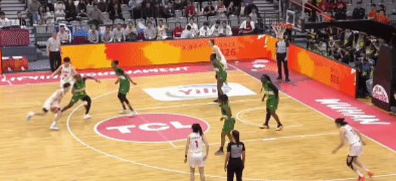 中國隊旋即再變戰術:陳明伶打5號位,唐子婷、羅欣棫打前鋒,楊舒予和陳玉婕打后衛。——在連續嘗試三分不中之后,楊舒予三分命中,打停了馬里隊。