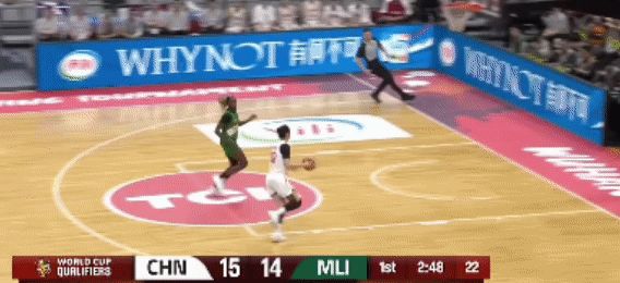 馬里隊內突外投連續拿分,5-0,中國隊重新調整戰術,楊舒予突破給到韓旭,后者中投拿分。