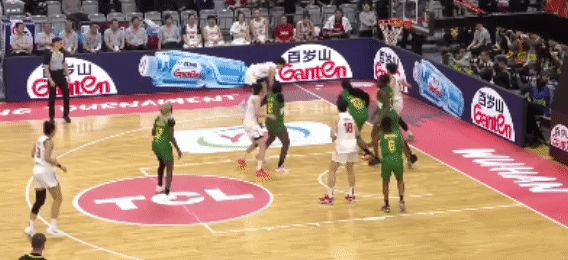 第二節比賽,羅欣棫三分、兩分連續斬獲,旋即李月汝突破上籃再拿分,中國隊2分鐘內連續得分,擴大優勢。韓旭、李月汝兩位中鋒出戰!