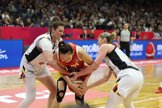比賽一開始,中國女籃便暴露出進入狀態緩慢的老問題。比利時隊反客為主,外線手感火熱,連續命中三分球迅速建立優勢。反觀中國女籃的內線雙塔韓旭和李月汝手感冰涼,頻頻打鐵,首節比賽,中國女籃以11比21落后10分。