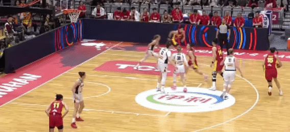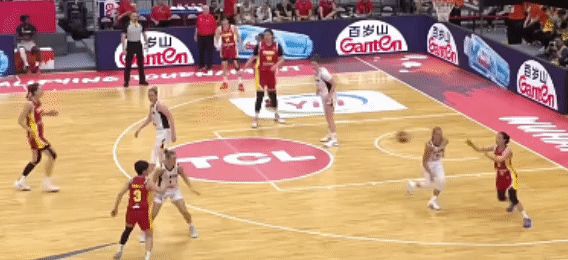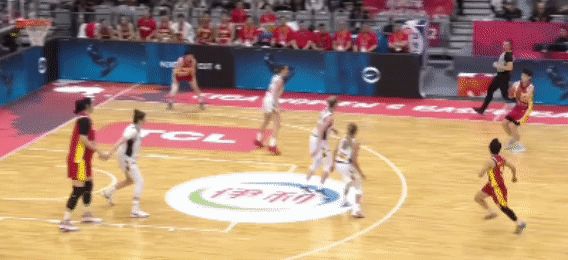 這一節中段,中國隊的戰術執行比較到位,防守端很有活力,搶斷的效力提升了:這一個從防守到反擊拿分的過程,很犀利,很流暢!