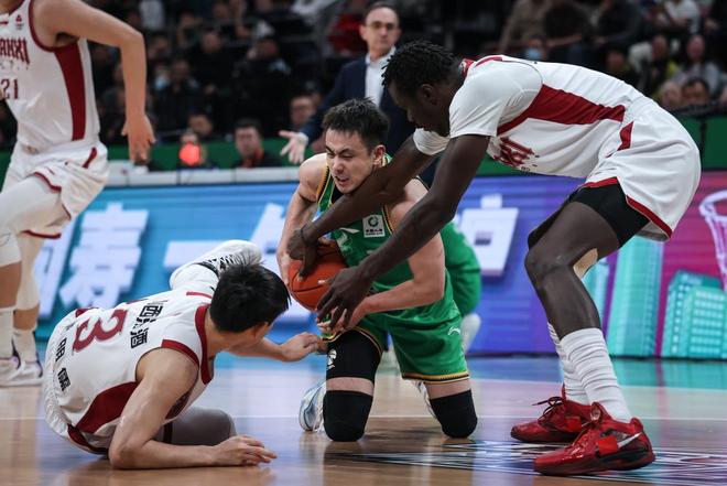 3月13日,山西汾酒隊球員迪亞洛(左)在比賽中。新華社記者 潘昱龍 攝