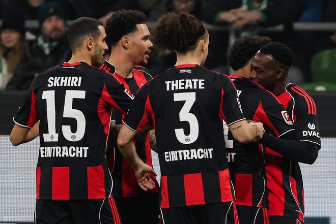 僅僅2分鐘后,不萊梅中后場左側斜長傳快速反擊,斯赫米德中路跟進突入禁區獲得單刀機會,稍微慢半拍的情況下,面對出擊的門將考阿,斯赫米德轉身往右邊做球,后排插上的米洛舍維奇迎球推射空門得手,不萊梅3:2反超了比分。從兩度領先到落后,法蘭克福沒有放棄,補時最后1分鐘,法蘭克福右路壓上,埃奇古亞卜強行突破下底,搶在皮球出底線之前將球兜回來,克瑙夫小禁區前沿搶點凌空推射,皮球直入球門右下死角,法蘭克福3:3壓哨絕平不萊梅。