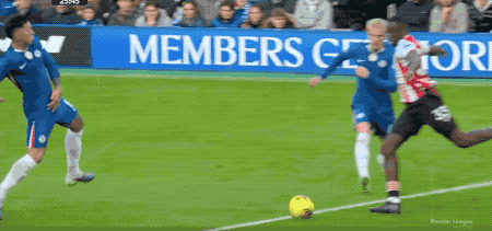 第21分鐘,布倫特福德獲得絕佳機會,沙德利用速度突入禁區(qū),冷靜晃過飛鏟的凱塞多,直面桑切斯,居然選擇了傳球,錯失良機。