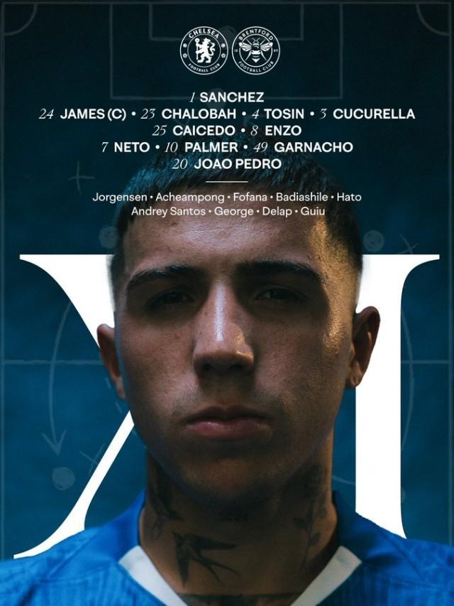 英超第22輪,切爾西主場對陣布倫特福德,賽前切爾西首發陣容已經出爐,具體名單如下: 切爾西首發:羅伯特·桑切斯 / 里斯·詹姆斯、查洛巴、阿達拉比奧約、庫庫雷利亞 / 凱塞多、恩佐 / 內托、帕爾默、加納喬 / 若昂·佩德羅