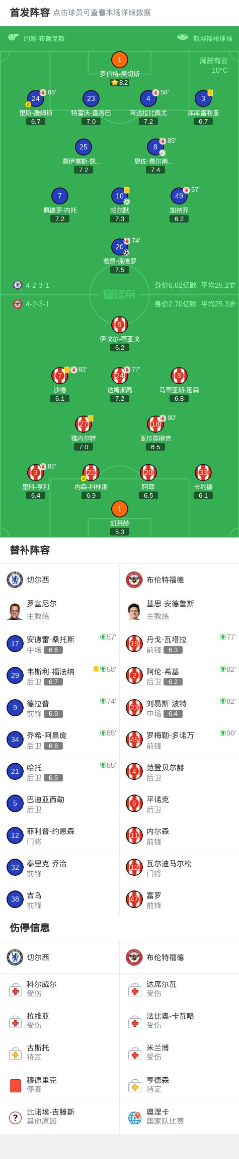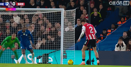第10分鐘,布倫特福德后防失誤,加納喬突入禁區,凱萊赫出擊破壞