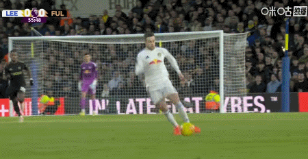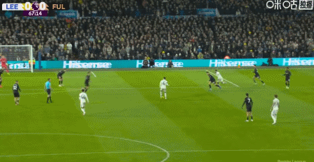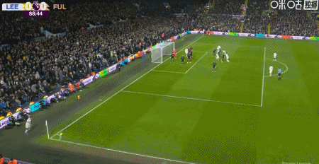 第90+1分鐘,恩梅加倒地情況下掃射破門,利茲聯1-0富勒姆