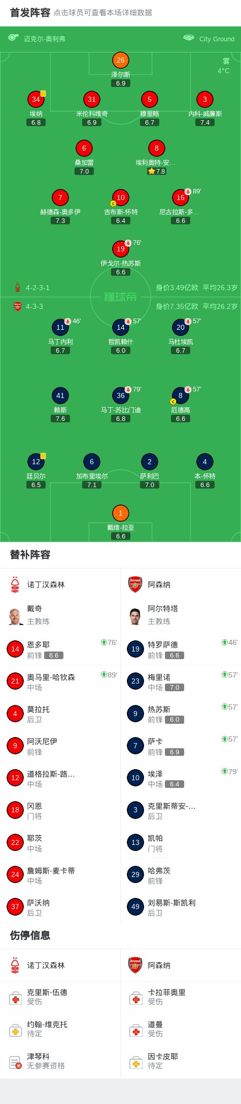 北京時間1月18日英格蘭足球頂級聯賽 聯賽 第22輪,諾丁漢森林主場對陣阿森納。最終比分諾丁漢森林 0-0 阿森納。