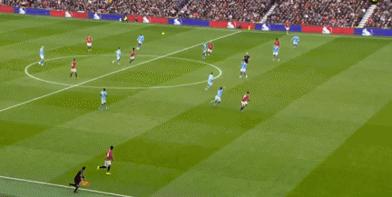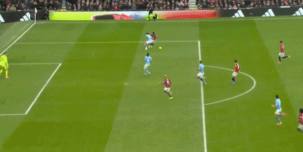 第32分鐘,羅德里后場(chǎng)回傳失誤,曼聯(lián)球員B費(fèi)禁區(qū)內(nèi)無(wú)私橫傳,胡桑諾夫搶在姆伯莫之前完成關(guān)鍵攔截。