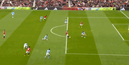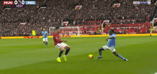 第10分鐘,羅德里分球左路,多庫(kù)變向突破,達(dá)洛特踹到對(duì)手的膝蓋,但裁判手下留情,僅出示黃牌警告,曼聯(lián)逃過(guò)紅牌。