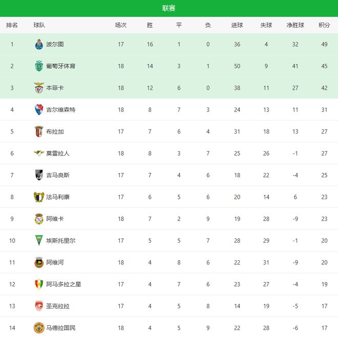 穆里尼奧終于贏了!在葡超第18輪,本菲卡客場挑戰里奧阿維(阿維河),最終憑借上半場的兩粒進球,2-0干凈利落帶走三分,止住了2連敗頹勢(葡聯杯和葡萄牙杯),聯賽18場不敗積42分,排在葡超積分榜第三;在先賽一場情況下,落后領頭羊波爾圖7分之巨,比第二名的葡萄牙體育少3分,聯賽爭冠基本沒戲,不過拿下聯賽第二,斬獲下賽季歐冠資格相信問題還是不大!