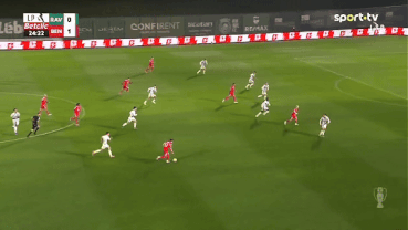比賽開始后,本菲卡迅速掌控節奏,控球、壓迫、推進一氣呵成,直接壓得主隊只能龜縮防守,找機會打反擊??上П痉瓶ㄟB續錯失破門良機,直到第16分鐘,右路進攻打穿防線,蘇達科夫送出精準傳中,巴雷羅前點搶一記頭球砸進球門,本菲卡1-0打破僵局!