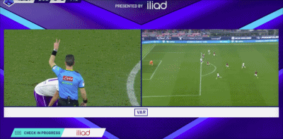第45分鐘,皮科利補射破門經VAR認定有效,佛羅倫薩2-0領先