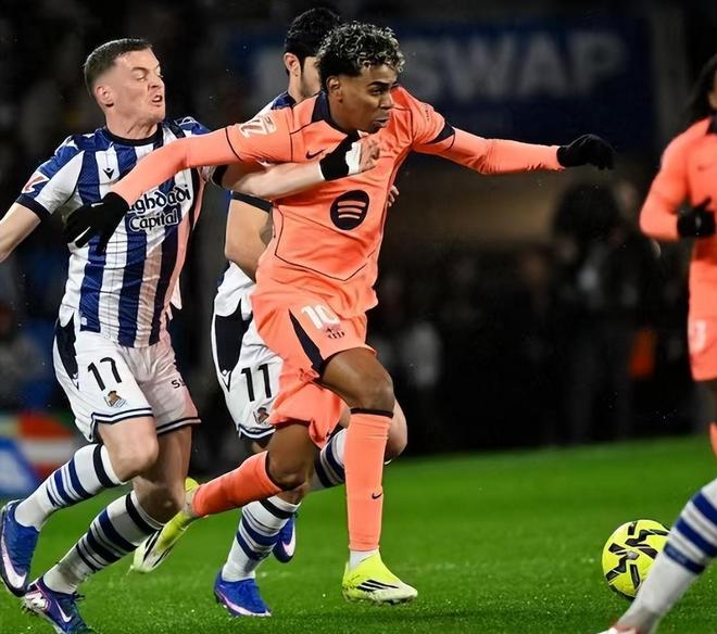 領(lǐng)頭羊巴薩吃到了近兩個月以來的首場敗仗,客場1-2不敵皇家社會。這一場比賽,巴薩是實力占優(yōu)的一方,開場不到1分鐘的時間,奧亞薩瓦爾的進(jìn)球就讓巴薩驚出一身冷汗,好在越位在先進(jìn)球無效。隨后巴薩穩(wěn)住陣腳,一波波攻勢威脅皇家社會,但是費爾明、德容、亞馬爾的進(jìn)球都因為越位被吹掉。第32分鐘場上0-0的比分終于被改寫,格德斯傳中,奧亞薩瓦爾在后點左腳凌空抽射破門。