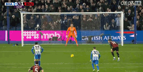 第90分鐘,范黑克助攻,科斯圖拉斯倒鉤絕平,布萊頓1-1