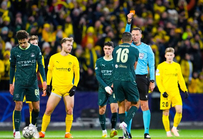 顏面盡失的曼城,在第60分鐘靠著謝爾基大禁區(qū)外的一腳貼地?cái)兀蜻M(jìn)了挽回顏面的一球,將比分追至1-2,就在曼城球迷看到一絲觸底反彈的曙光時(shí),金球先生羅德里1分鐘之內(nèi)連吃?xún)蓮堻S牌被罰下,讓藍(lán)月軍團(tuán)徹底失去了追平比分的希望。