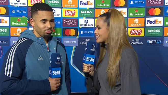 歐冠聯賽階段第7輪,阿森納客場3-1戰勝國米,本場比賽梅開二度的熱蘇斯賽后接受了CBS體育的采訪。