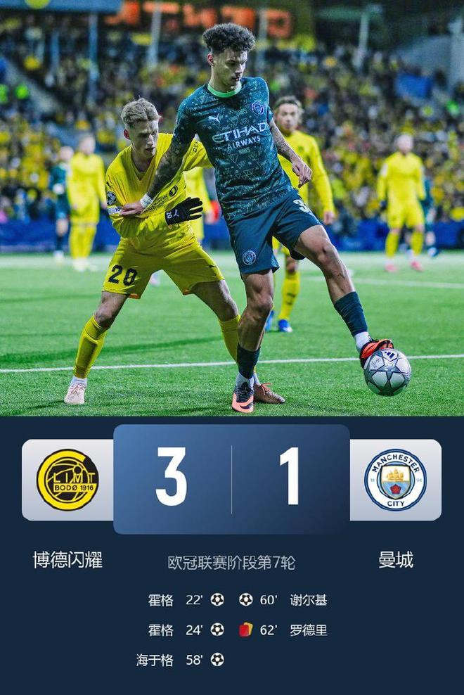 曼城客場爆冷完敗收場,遭遇各項賽事2連敗,送給博德閃耀本賽季歐冠首勝。