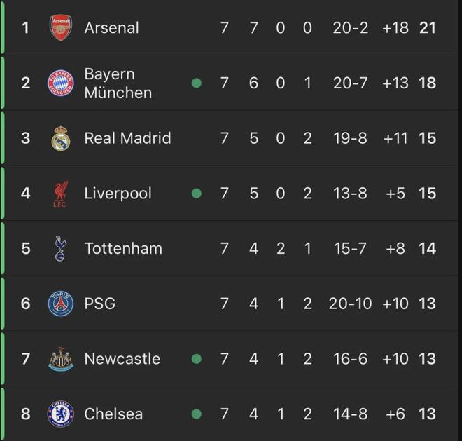 北京時(shí)間1月22日,歐冠聯(lián)賽第七輪比賽全部結(jié)束。而在排名前8的球隊(duì)之中,竟有5支英超球隊(duì),分別是:阿森納、利物浦、熱刺、紐卡和切爾西。而6支英超參賽球隊(duì)中,僅本輪爆冷輸球的曼城無(wú)緣前8。瓜迪奧拉的球隊(duì)以凈勝球劣勢(shì),暫居歐冠聯(lián)賽階段第11位。即便曼城未能躋身前8,但英超第一聯(lián)賽在歐冠的統(tǒng)治力顯露無(wú)疑。
