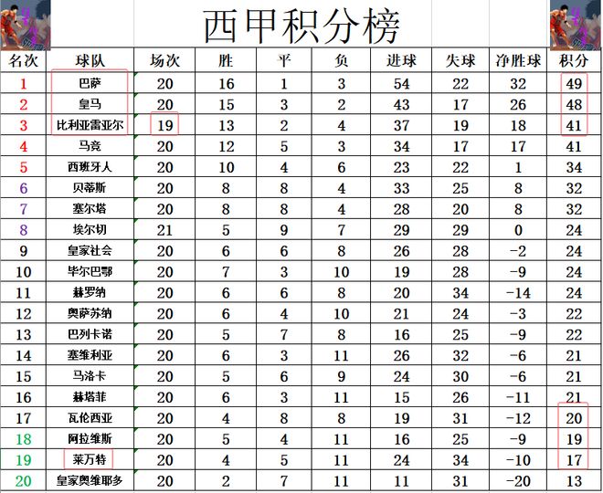 積分榜方面,皇馬上輪剛換帥就有些許好運,巴薩爆冷丟分,皇馬將差距縮小到1分,不過本輪皇馬將迎來硬仗,他們將作客陶瓷球場對陣排名第3的比利亞雷亞爾,搞不好又要被巴薩拉大分差。萊萬特今天雖然是壓哨絕殺贏了保級大戰,但他們還是排在倒數第2深陷降級區,還差3分才能追上瓦倫西亞。