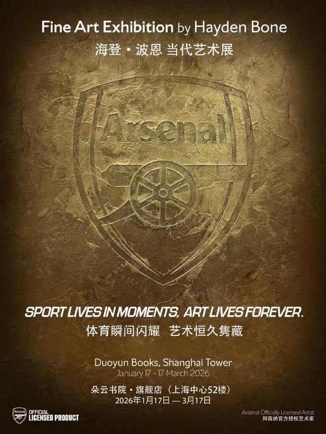 “這次展覽讓書(shū)籍、藝術(shù)和體育實(shí)現(xiàn)了深度對(duì)話,也是我們探索文旅商體展融合的一次重要嘗試。” 世紀(jì)朵云總經(jīng)理吳軍介紹,展覽現(xiàn)場(chǎng)同步發(fā)售由海登?波恩作品衍生的官方授權(quán)藝術(shù)展品,以及阿森納俱樂(lè)部精選周邊商品,“我們希望當(dāng)觀眾漫步于展廳,欣賞那些描繪團(tuán)結(jié)、榮耀與個(gè)人精神的畫(huà)作時(shí),也能在轉(zhuǎn)身之間,從我們的書(shū)架上發(fā)現(xiàn)與之相關(guān)的歷史、美學(xué)和人物傳記類(lèi)書(shū)籍,完成一次從視覺(jué)到思想的深度漫游。期待本次展覽能讓所有到訪者領(lǐng)略阿森納俱樂(lè)部那些令人激動(dòng)的瞬間。”