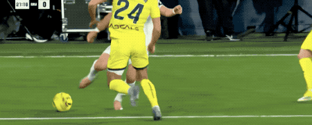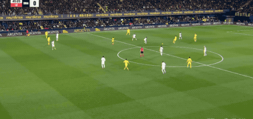 第62分鐘,比利亞雷亞爾的任意球設計巧妙,莫雷諾身邊無人,居然將球打高,黃潛自家球迷都攤手表達不滿。