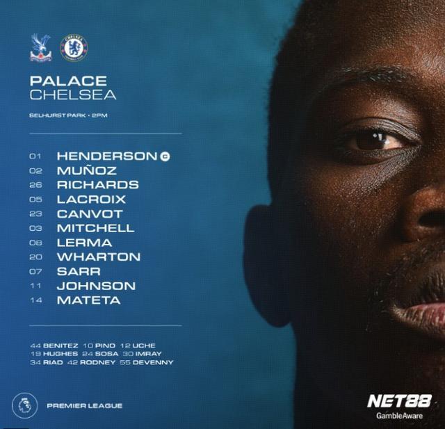 水晶宮首發:1-亨德森、23-康沃、3-米切爾、26-理查茲、5-拉克魯瓦、2-穆尼奧斯、20-沃頓、8-萊爾馬、11-約翰遜、7-薩爾、14-馬特塔