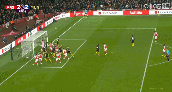 第84分鐘,阿森納再度利用角球拯救球隊,薩卡助攻,梅里諾禁區混戰中扳平比分!阿森納2比2追平!