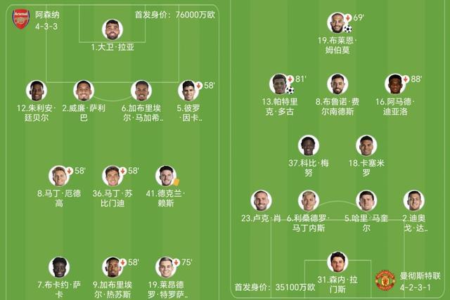 在上任首場擊敗瓜迪奧拉的曼城后,面對阿爾特塔帶領的阿森納,薩卡、熱四斯和特羅薩德組成進攻三叉戟。卡里克為曼聯繼續采用4231陣型,姆伯莫突前,身后是多古、B費和阿馬德-迪亞洛。