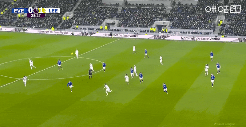 第27分鐘,利茲聯中前場右側高位逼搶斷球反擊,斯塔赫根博格來個撞墻配合后下底倒三角傳中,阿倫森前點一讓,他身后后排跟進的賈斯汀小禁區前沿迎球大力推射半空門得手,利茲聯1:0首開紀錄。第34分鐘,利茲聯右路快攻,阿倫森禁區前沿策應直塞,博格跟進突入禁區倒三角橫傳門前,勒溫小禁區內搶點超近距離推射,BOOM的一聲皮球被門柱擋出,埃弗頓逃過一劫。