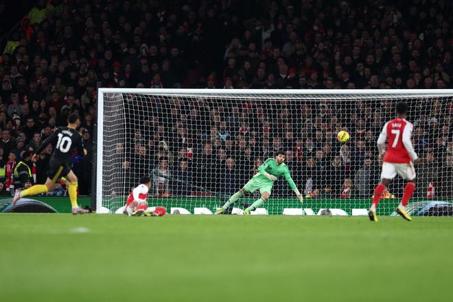 英超第23輪焦點戰,曼聯客場3-2逆轉阿森納,紅魔前鋒庫尼亞遠射破門,攻入制勝球,英超官方分析了這粒進球的過程。