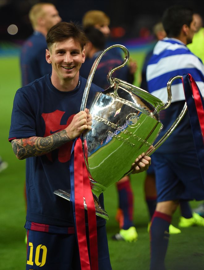 梅西還有五子登科,還有對陣利物浦的絕對角任意球,以及2015年帶隊獲得史上最有含金量的歐冠冠軍——當年梅西帶巴薩在歐冠擊敗了五大聯賽所有衛冕冠軍、奪冠。那一年,梅西的巴薩還擊敗了其他五個不同杯賽和聯賽的冠軍,獲得五冠王。唯一輸的對手,也在其他賽季被贏回來。