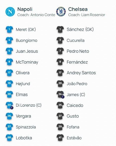 北京時間1月29日04:00,歐冠聯賽階段的一場對決。那不勒斯坐鎮主場,迎戰切爾西。賽前,雙方的陣容公布如下: