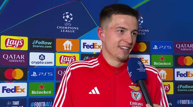 歐冠聯(lián)賽階段第8輪,本菲卡主場4-2戰(zhàn)勝皇馬,最后時刻攻入一球幫助球隊(duì)晉級歐冠淘汰附加賽的本菲卡門將特魯賓賽后接受了TNT體育的采訪。