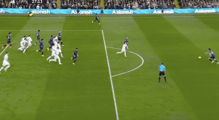 特羅薩德的傳球快速且準確,約克雷斯形成單刀,但調整實在太慢,羅登將球鏟走,約克雷斯再次捋了捋頭發。
