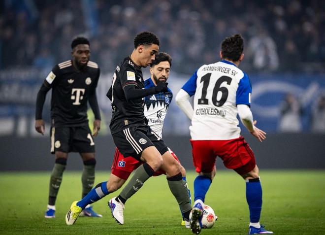6分鐘之后,基米希禁區內拼搶時,被吹罰犯規,主裁給了漢堡點球,維埃拉主罰命中,幫助主隊取得了1-0的領先,不過第42分鐘凱恩門前的轉身抽射建功,讓雙方很快就1-1回到了同一起跑線,半場結束之前,凱恩助攻格納布里反超比分,但越位在先導致進球被取消。