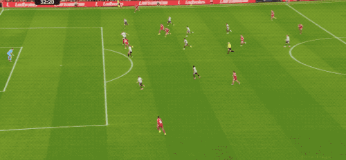 第32分鐘,利物浦的反擊簡潔有效,埃基蒂克插上,小角度吊射,波普順勢將球擋出,特里皮爾趕緊大腳解圍。