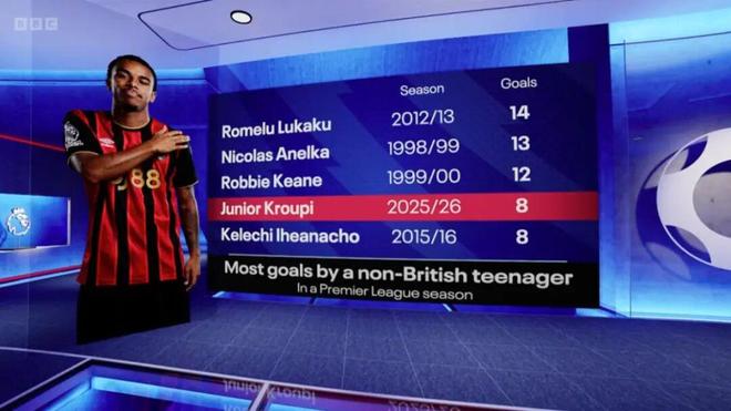 上一位在20歲生日前在英格蘭頂級聯賽單賽季打進如此多進球的法國球員,還是阿森納時期的阿內爾卡,他在1998-99賽季為溫格的球隊攻入了13球。直到今年6月才滿20歲的克魯皮,只需再進兩球就能達到兩位數——在英超歷史上,只有10名U20球員曾達到這一里程碑。他或許是與賽門尼奧不同類型的球員,但克魯皮的8個進球僅來自10次首發,有潛力成為同樣耀眼的明星。