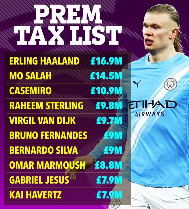 根據《泰晤士報》的調查結果,哈蘭德在2025年繳了1690萬英鎊的稅款,遠高于英超聯賽的其他球員。