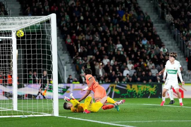此役,巴薩派出了亞馬爾、費(fèi)蘭托雷斯和拉菲尼亞的進(jìn)攻三叉戟。開場6分鐘,奧爾莫精準(zhǔn)直塞,亞馬爾單刀赴會(huì)晃過門將打門得手,巴薩客場1-0領(lǐng)先。第28分鐘,奧爾莫打門擊中橫梁。隨后埃爾切發(fā)起進(jìn)攻,阿爾瓦羅-羅德里格斯反越位成功單刀破門扳平比分。第34分鐘,費(fèi)蘭托雷斯射門擊中橫梁,隨后他的補(bǔ)射再度被門框拒絕。第41分鐘,德容冷靜回做,這一次費(fèi)蘭托雷斯沒有錯(cuò)過機(jī)會(huì),他的推射敲開了埃爾切的球門,巴薩再度反超并半場2-1領(lǐng)先。