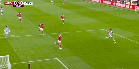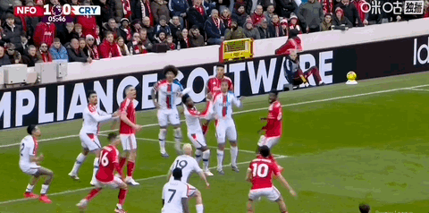 第5分鐘,懷特亂戰中推射近角破門,諾丁漢森林1-0領先水晶宮