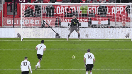 第83分鐘,希門尼斯突入禁區的射門被拉門斯撲出,但馬奎爾鏟倒了希門尼斯,裁判判罰點球。