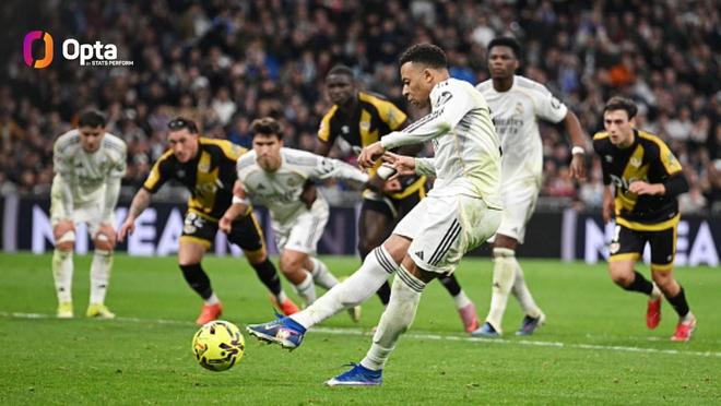 據統計,姆巴佩在99分34秒打入的點球是皇家馬德里本世紀西甲比賽中打入的最晚制勝球。