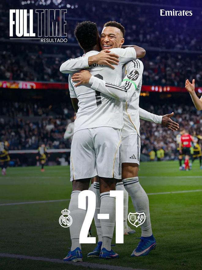 比賽結束,皇家馬德里在主場擊敗巴列卡諾!
