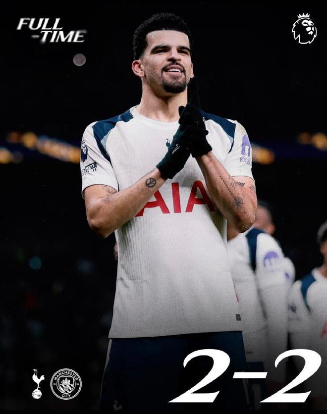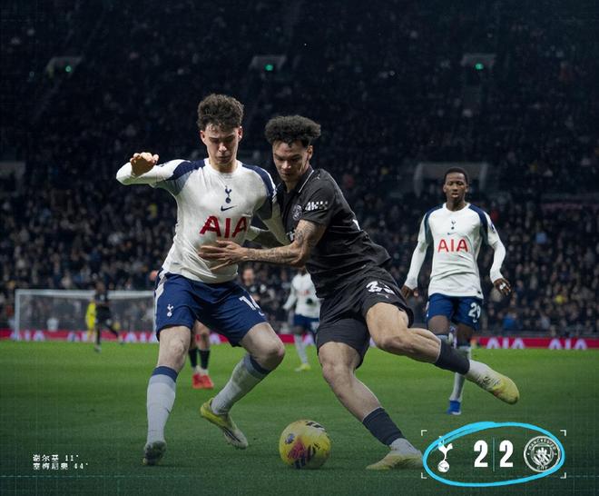 從全場數據來看,曼城雖然占據控球率優勢(61%對39%),且射門次數達到18次,遠超熱刺的8次,但射正率僅為16.7%,高效的進攻轉化率早已不復存在。熱刺則憑借75%的超高射正率,用更少的射門創造了更多的得分機會,索蘭克2射2中的完美表現,成為球隊逼平曼城的最大功臣。