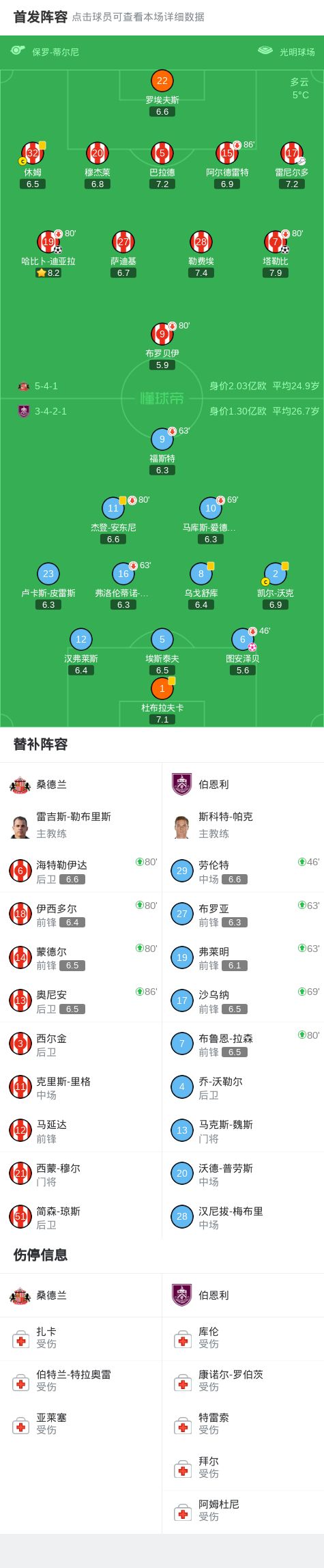 第32分鐘,穆杰萊倒三角傳球,迪亞拉破門完成雙響,桑德蘭2-0