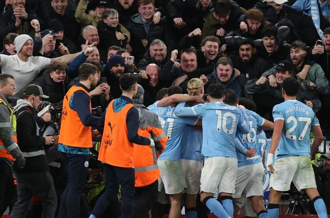 曼城在第84分鐘扳平比分!哈蘭德頭球擺渡到門前,伯納多-席爾瓦跟上倒地鏟射,球進(jìn)了!這粒進(jìn)球非常關(guān)鍵,極大地提升了曼城球員的士氣。補(bǔ)時(shí)階段,阿利松送點(diǎn)。哈蘭德主罰點(diǎn)球,他推射破門,完成絕殺!哈蘭德怒吼脫衣慶祝!最后時(shí)刻索博斯洛伊因?yàn)榉敢?guī)被罰下。最終,曼城上演奇跡逆襲,2-1擊敗衛(wèi)冕冠軍利物浦。