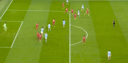 曼城在前場(chǎng)的施壓,迫使利物浦頻繁丟失球權(quán)。